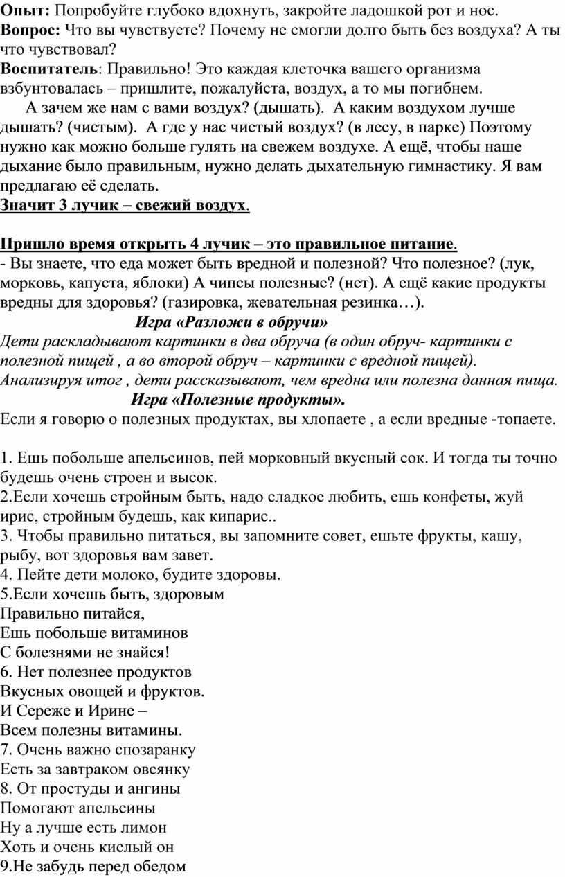 Значит 3 лучик – свежий воздух.