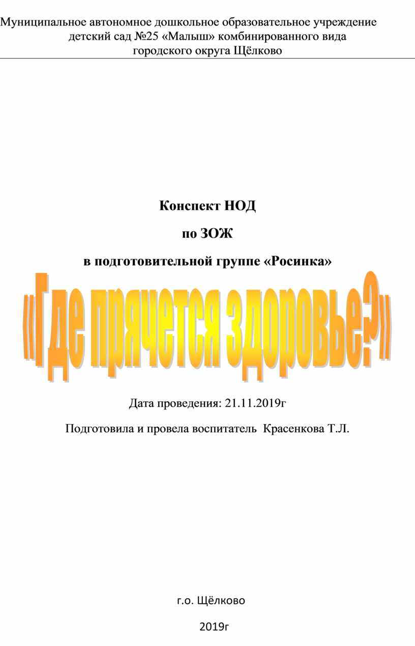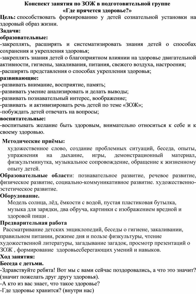 Конспект занятия по ЗОЖ в подготовительной группе «Где прячется здоровье?»