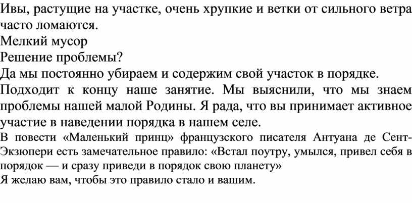 Подходит к концу наше занятие. Мы выяснили, что мы знаем проблемы нашей малой Родины. Я рада, что вы принимает активное участие в наведении порядка в нашем селе.