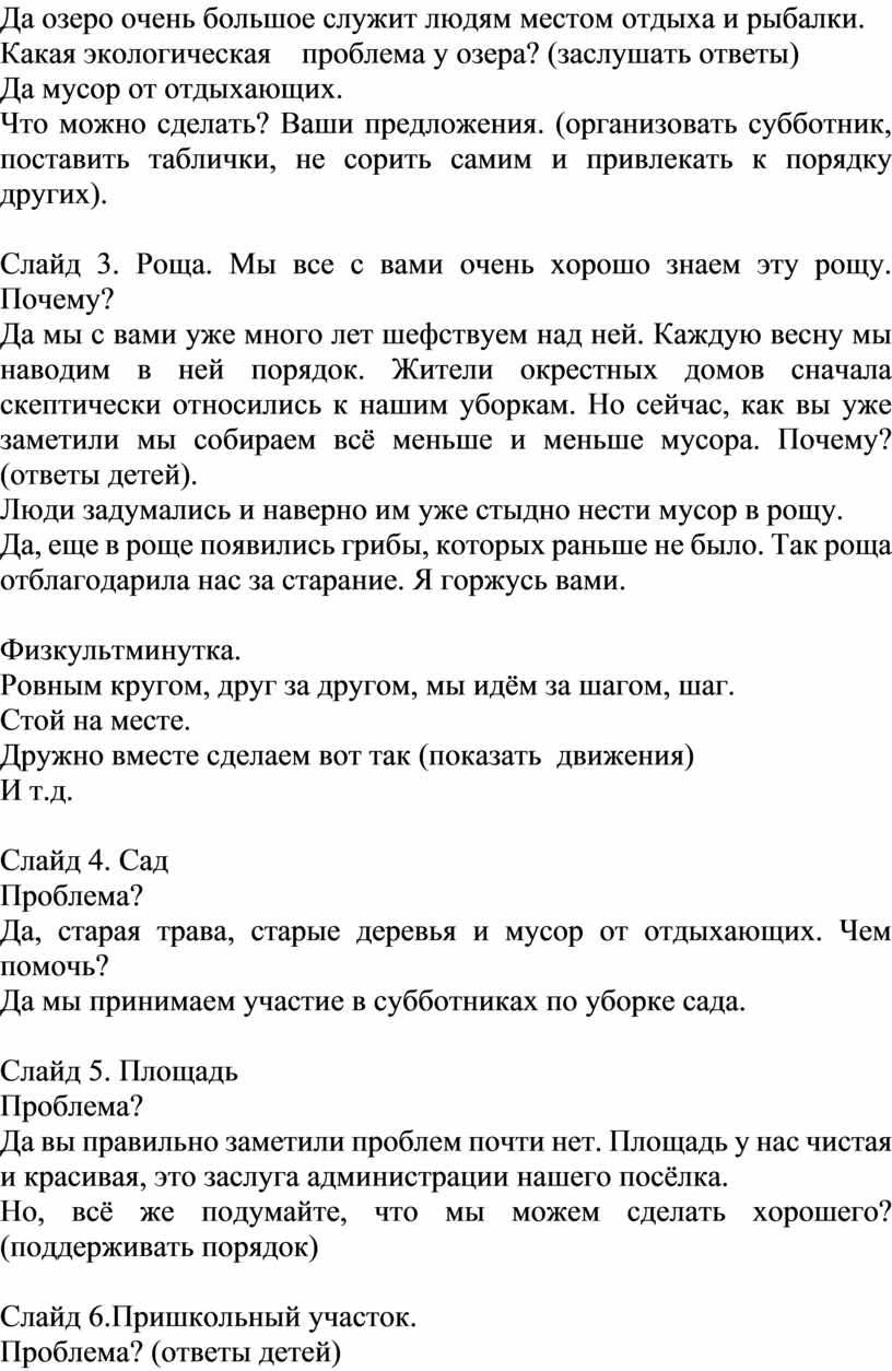 Да мы с вами уже много лет шефствуем над ней. Каждую весну мы наводим в ней порядок. Жители окрестных домов сначала скептически относились к нашим уборкам. Но сейчас, как вы уже заметили мы собираем всё меньше и меньше мусора. Почему? (ответы детей).
