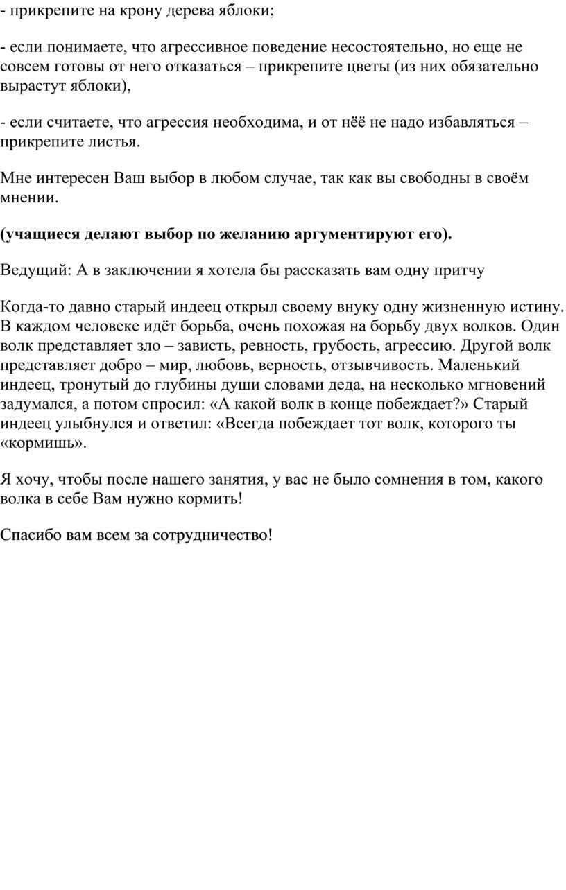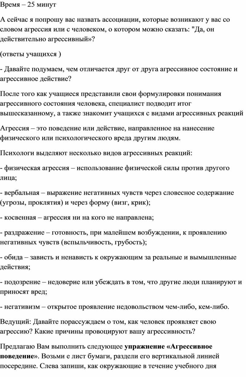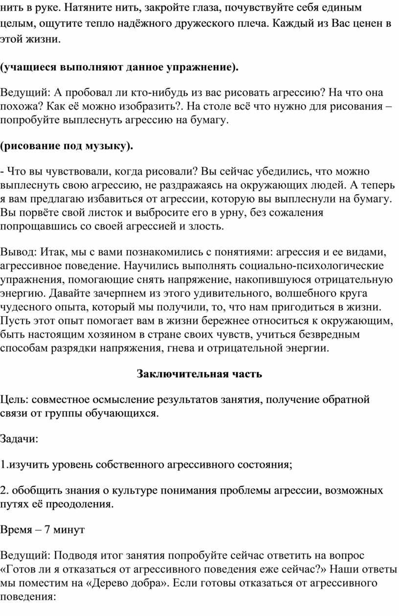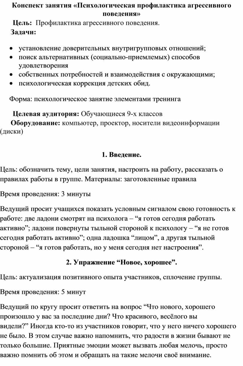 Конспект занятия «Психологическая профилактика агрессивного поведения»
