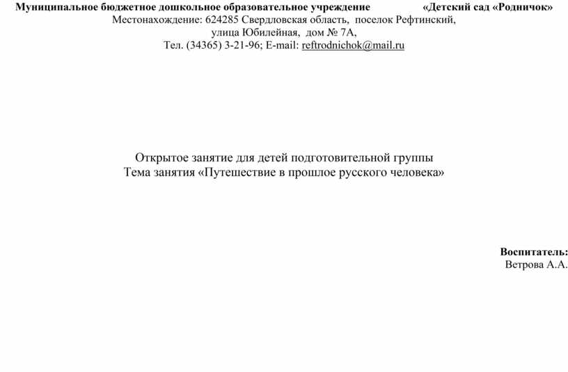 Тел. (34365) 3-21-96; E-mail: reftrodnichok@mail.ru
