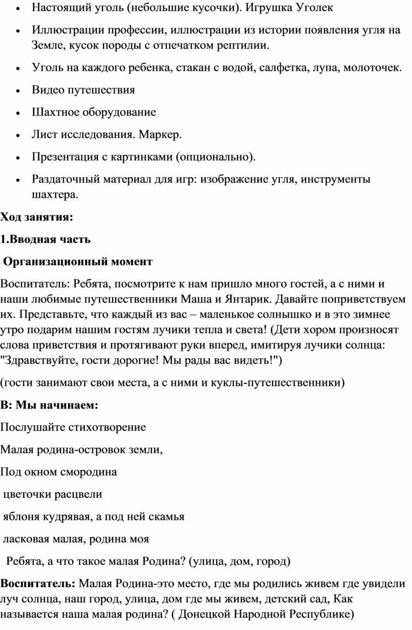 Формировать знания о том, где добывают уголь (шахта Ш. Глубокая) и как он используется