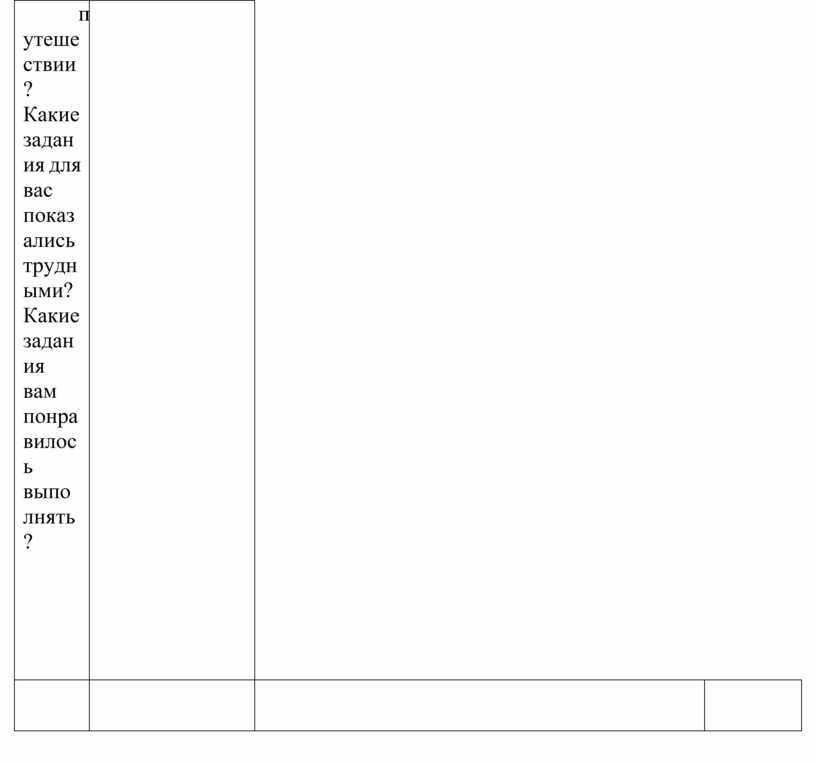 Рефлексия: Ребята, что вам больше всего запомнилось в сегодняшнем путешествии? Какие задания для вас показались трудными? Какие задания вам понравилось выполнять?