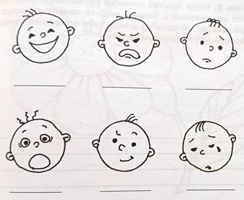 Дети в своих тетрадях выполняют рисунок пиктограммы той эмоции, которая часто не слушается их. Затем рисунки рассматриваются и обсуждаются при желании ребенка.