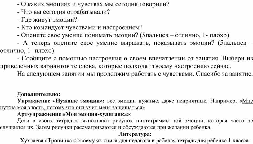 На следующем занятии мы продолжим работать с чувствами. Спасибо за занятие.