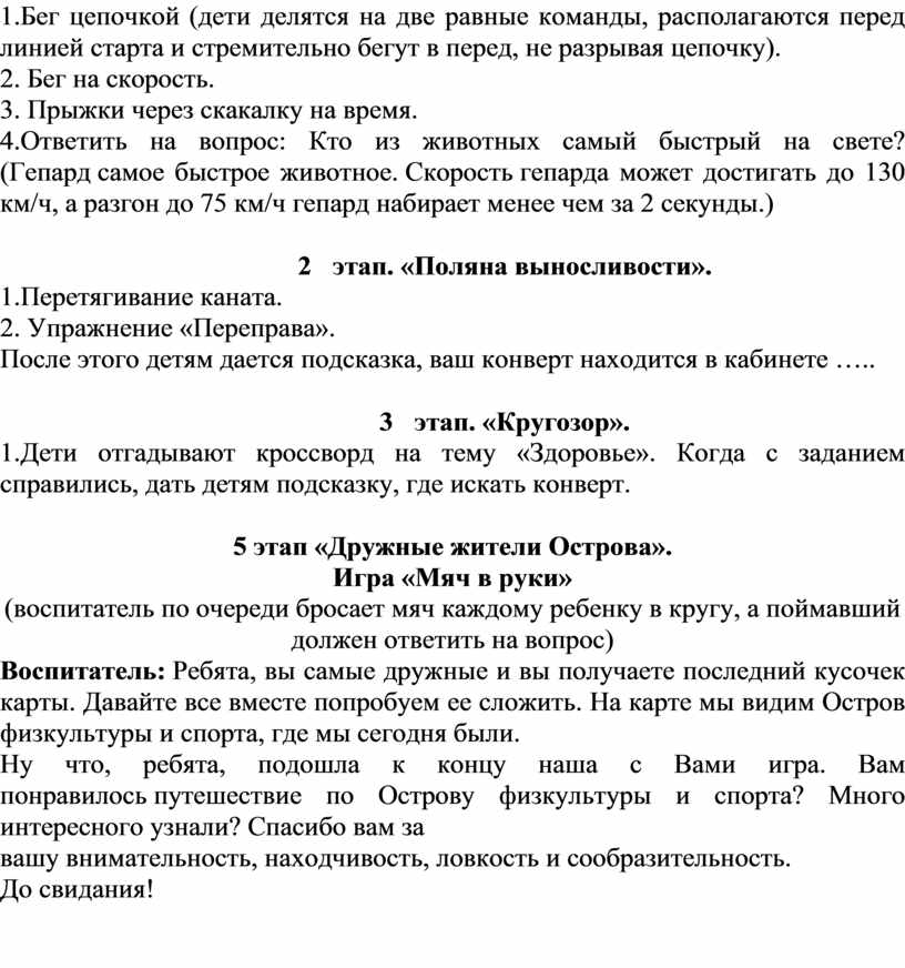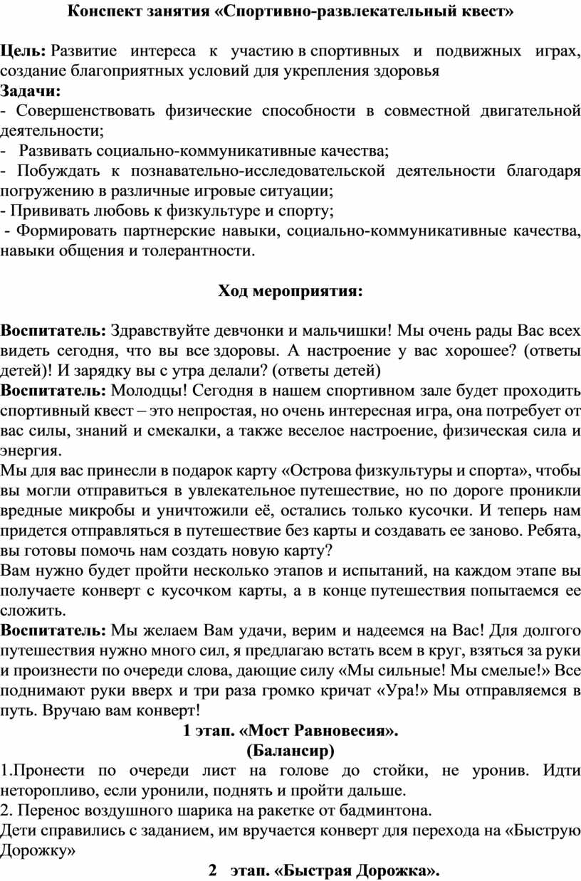 Конспект занятия «Спортивно-развлекательный квест»