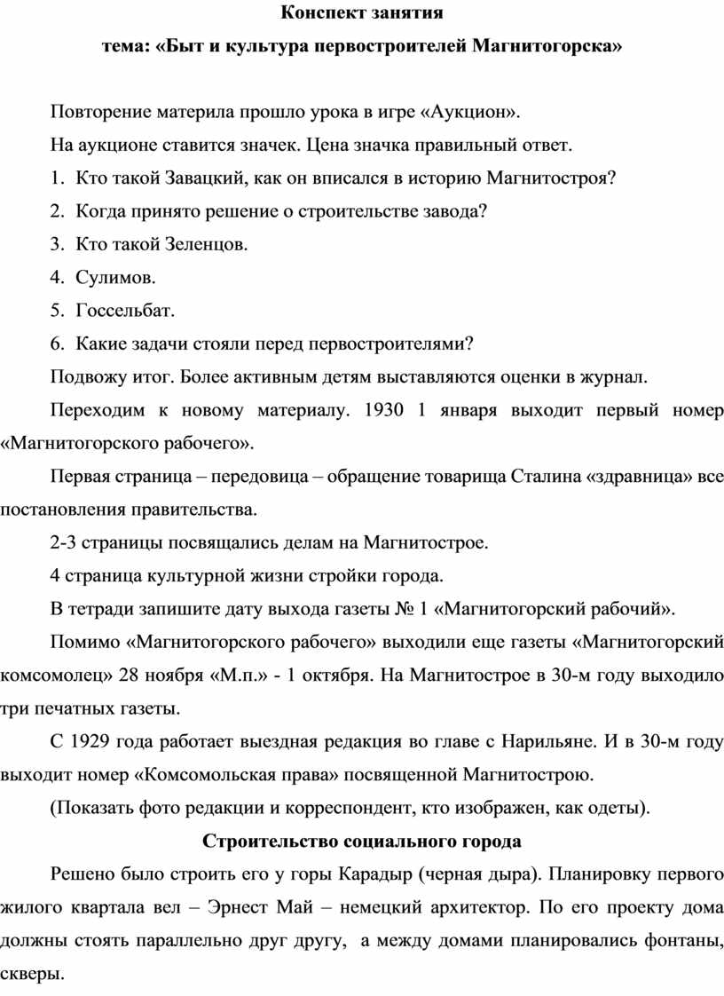 Переходим к новому материалу. 1930 1 января выходит первый номер «Магнитогорского рабочего».