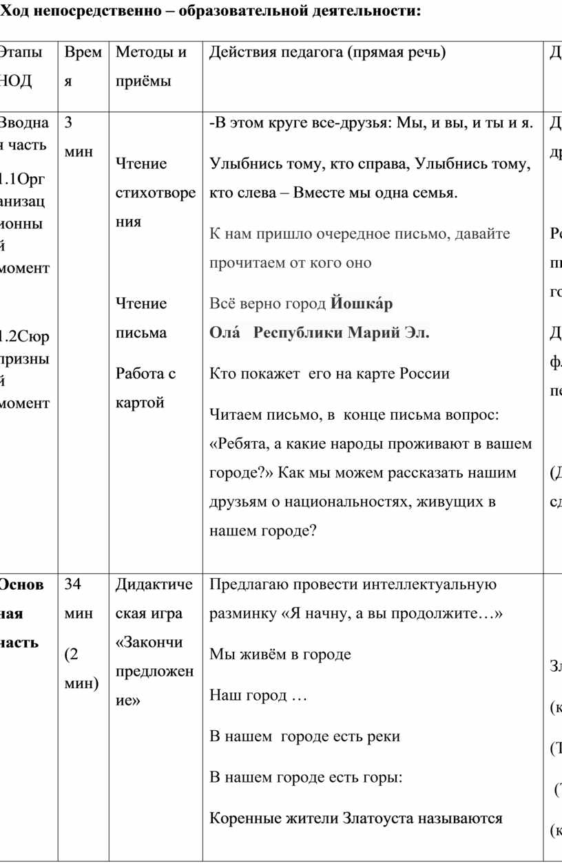 Конспект занятия