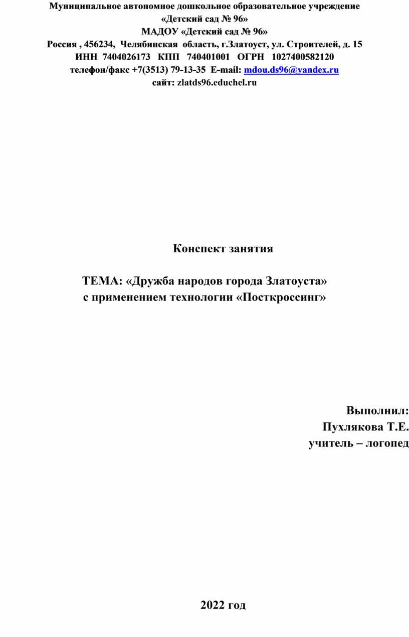 телефон/факс +7(3513) 79-13-35 E-mail: mdou.ds96@yandex.ru