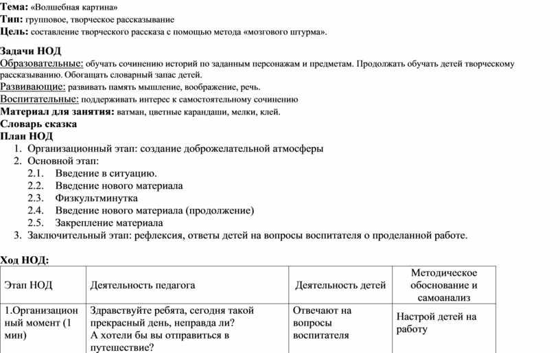 Цель: составление творческого рассказа с помощью метода «мозгового штурма».