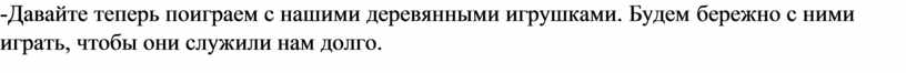 -Давайте теперь поиграем с нашими деревянными игрушками. Будем бережно с ними играть, чтобы они служили нам долго.