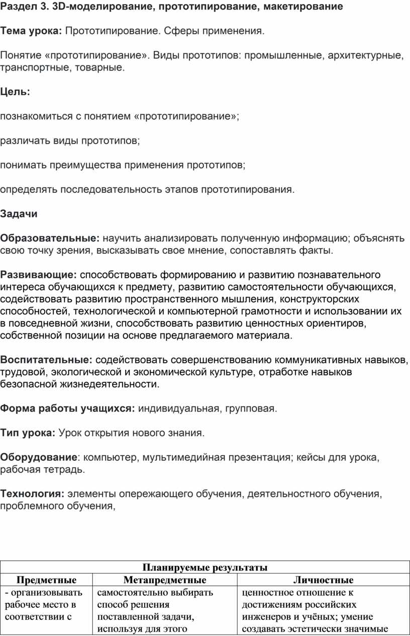Тема урока: Прототипирование. Сферы применения.