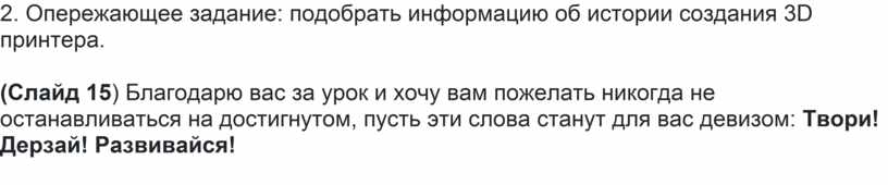 2. Опережающее задание: подобрать информацию об истории создания 3D принтера.