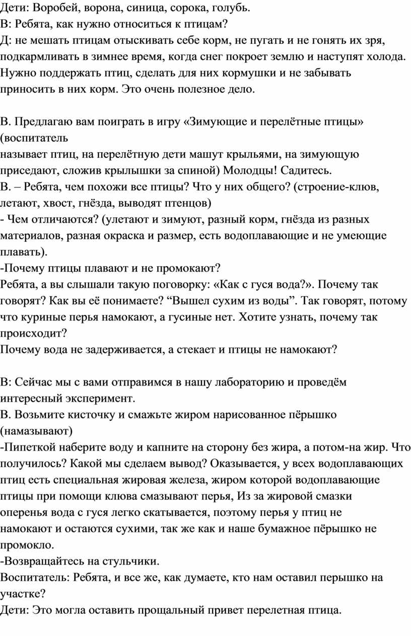 В. Предлагаю вам поиграть в игру «Зимующие и перелётные птицы» (воспитатель