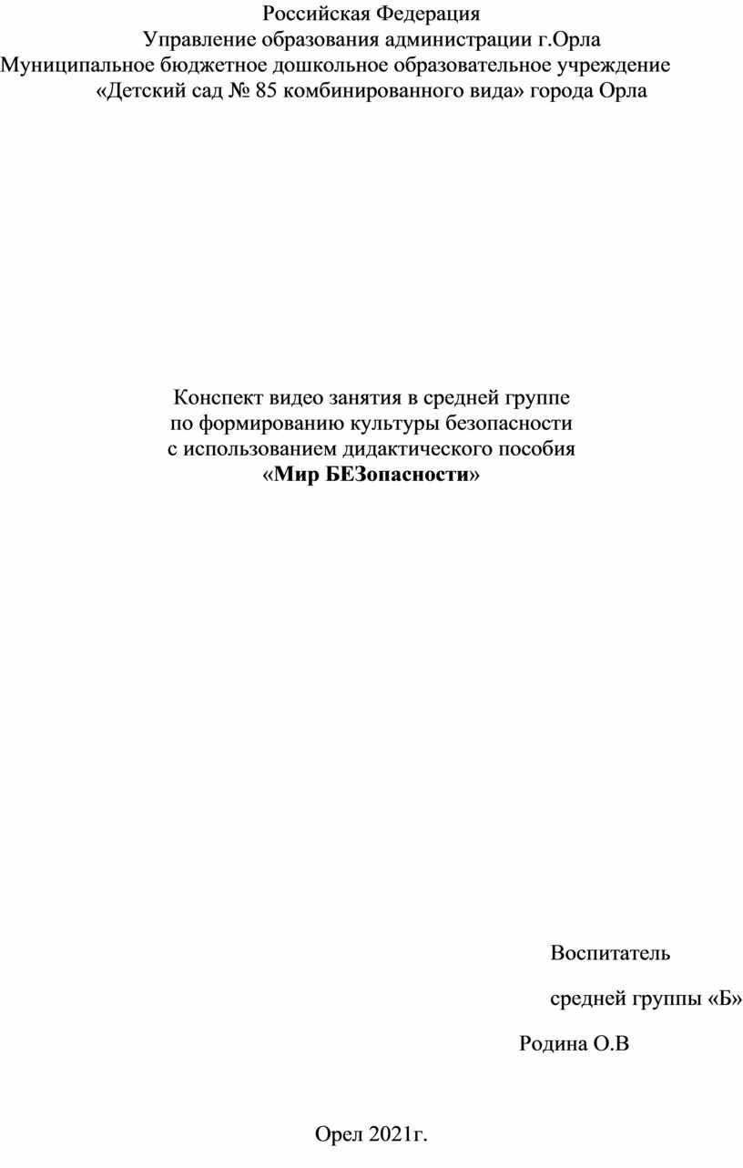 Муниципальное бюджетное дошкольное образовательное учреждение