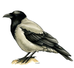 - Ворона острожная, хитрая и умная птица, имеет серое туловище и черные голову, шею, крылья и хвост