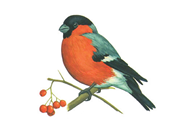 - Снегирь очень красивая птица. Головка чёрная, грудка красная, крылья серые. Снегирей зовут так, потому что они прилетают к нам с первым снегом. Живут снегири стайками в лесу.