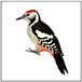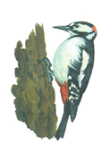 - У дятла в оперении наблюдается сочетание белых и черных цветов; дятел очень полезная птица, он часто стучит по дереву, лечит деревья, добывая из-под коры вредных насекомых.