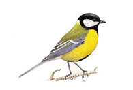- Синички очень подвижные и ловкие птички. Голова, горлышко, полоса вдоль груди у них чёрные, крылья и хвост голубоватые, спинка жёлто-зелёная, брюшко жёлтое, а щеки и пятно на затылке белые.