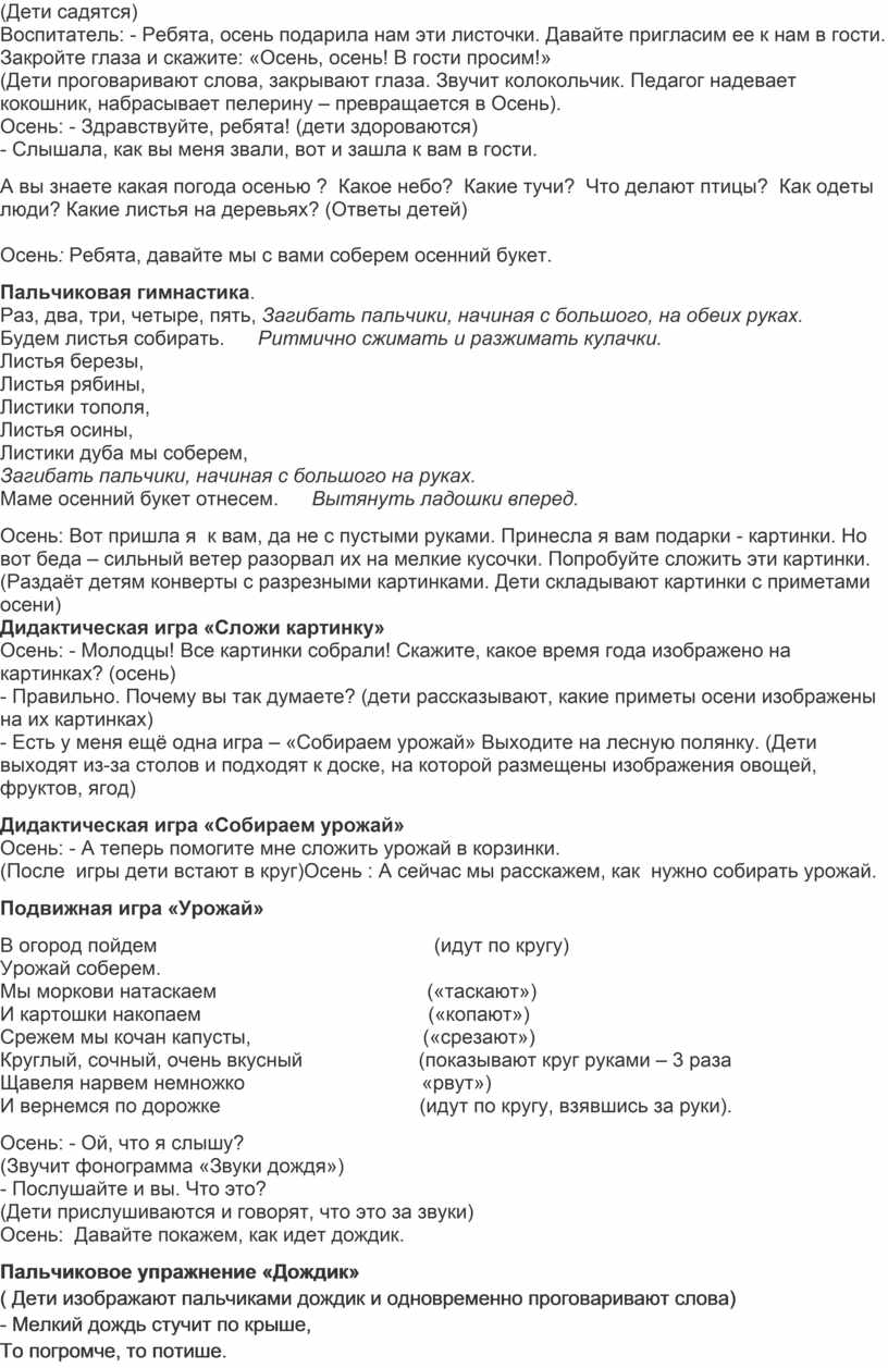 Воспитатель: - Ребята, осень подарила нам эти листочки. Давайте пригласим ее к