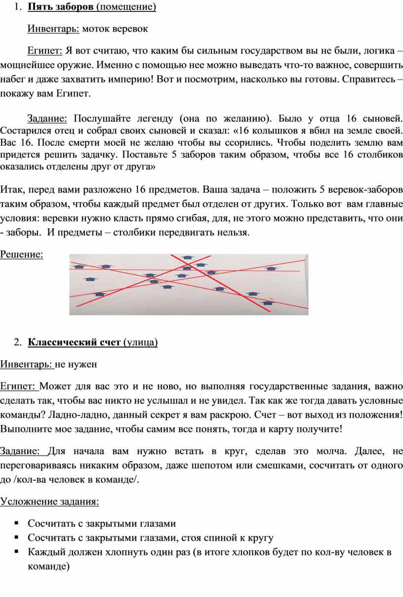 Задание: Вам необходимо пройти расстояние N !молча!, используя всего 6 точек опоры (рассчитать по формуле по количеству участников команды), при этом нужно задействовать всех участников. При разговорах проходить расстояние нужно с самого начала.