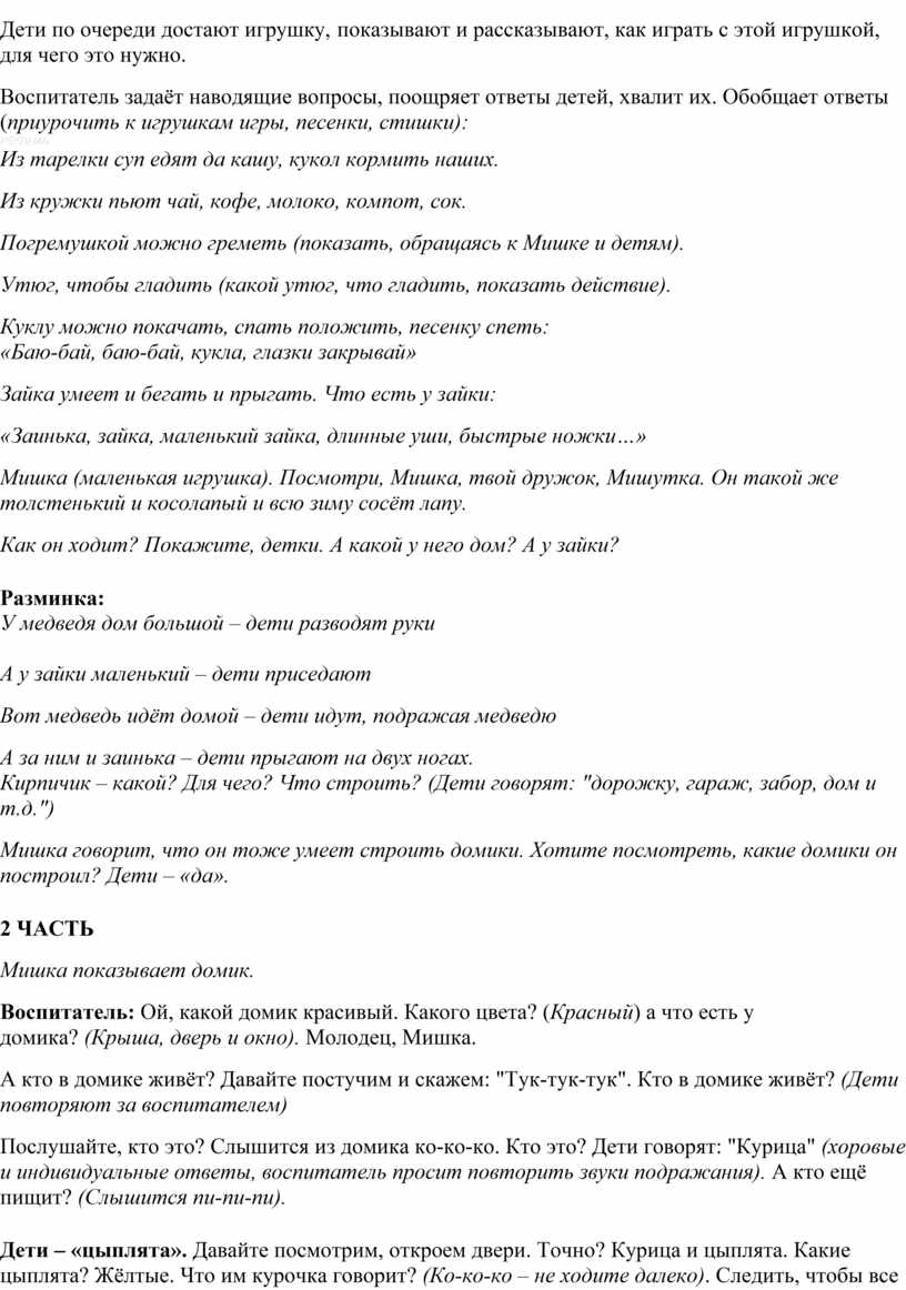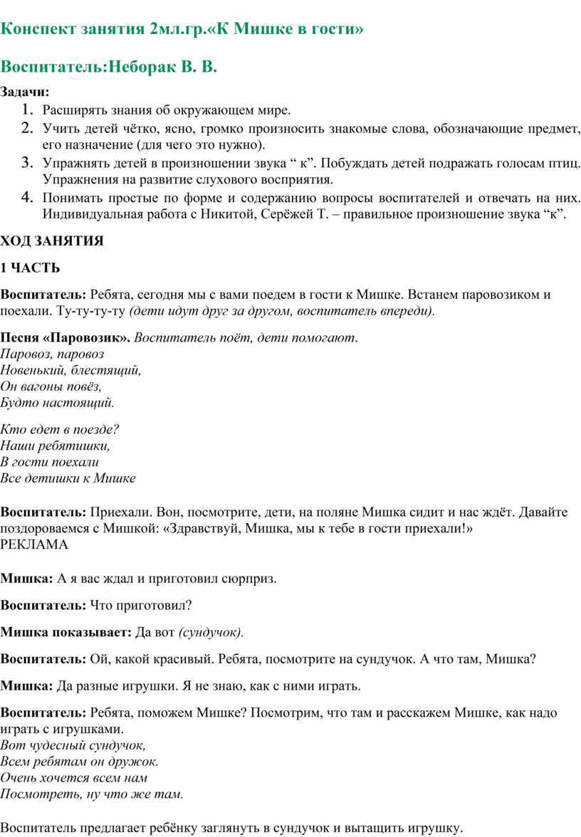 Конспект занятия 2мл.гр.«К Мишке в гости»