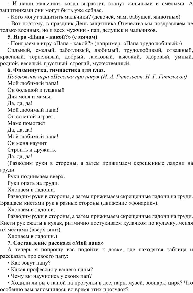 Подвижная игра «Песенка про папу» (Н. А. Гительсон, Н. Г. Гительсон)