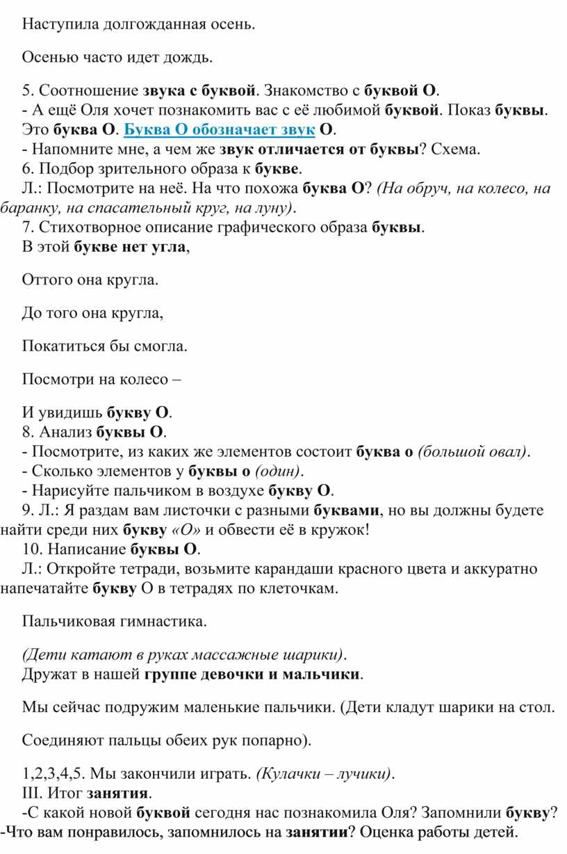5. Соотношение звука с буквой. Знакомство с буквой О.