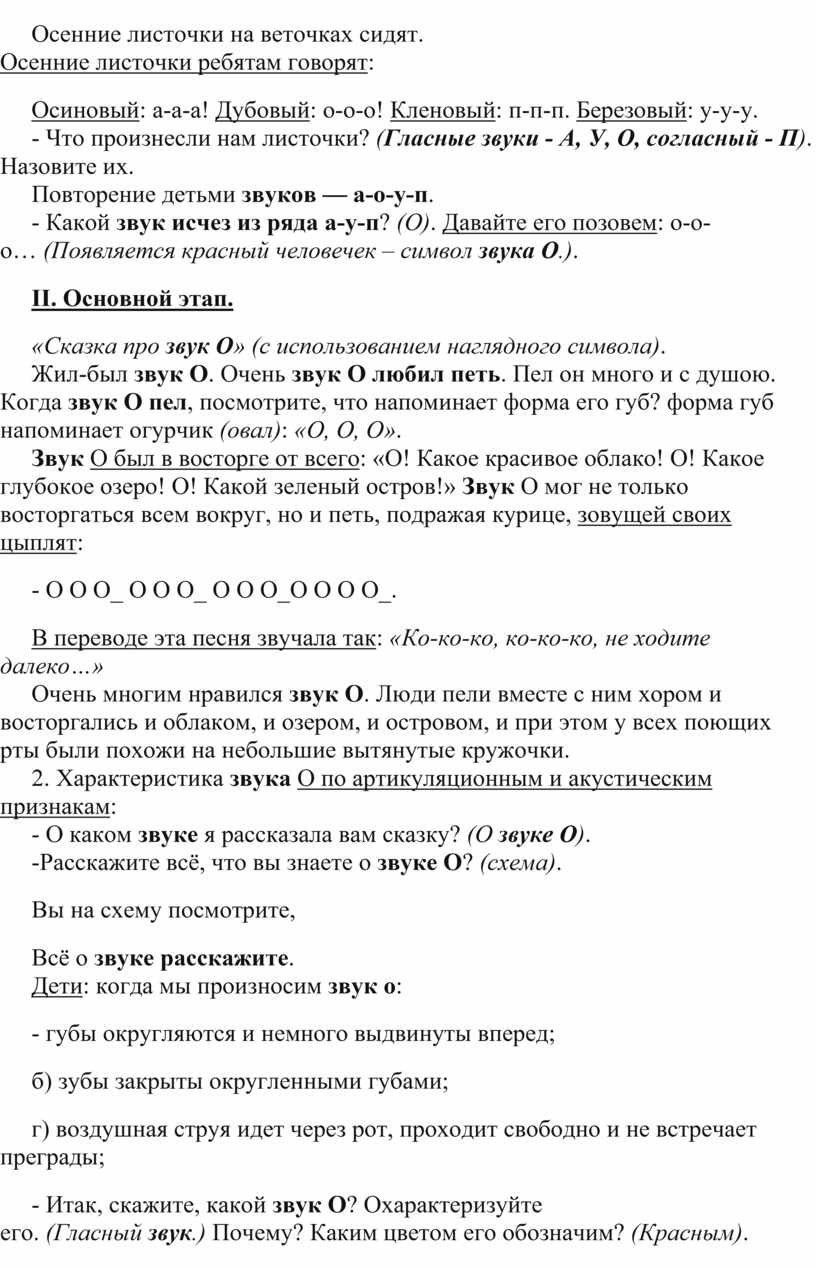- Итак, скажите, какой звук О? Охарактеризуйте его. (Гласный звук.) Почему? Каким цветом его обозначим? (Красным).
