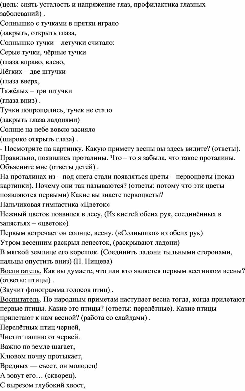 Воспитатель. Какие ещё признаки весны вы знаете? (Ответы: солнце пригревает всё сильнее) .