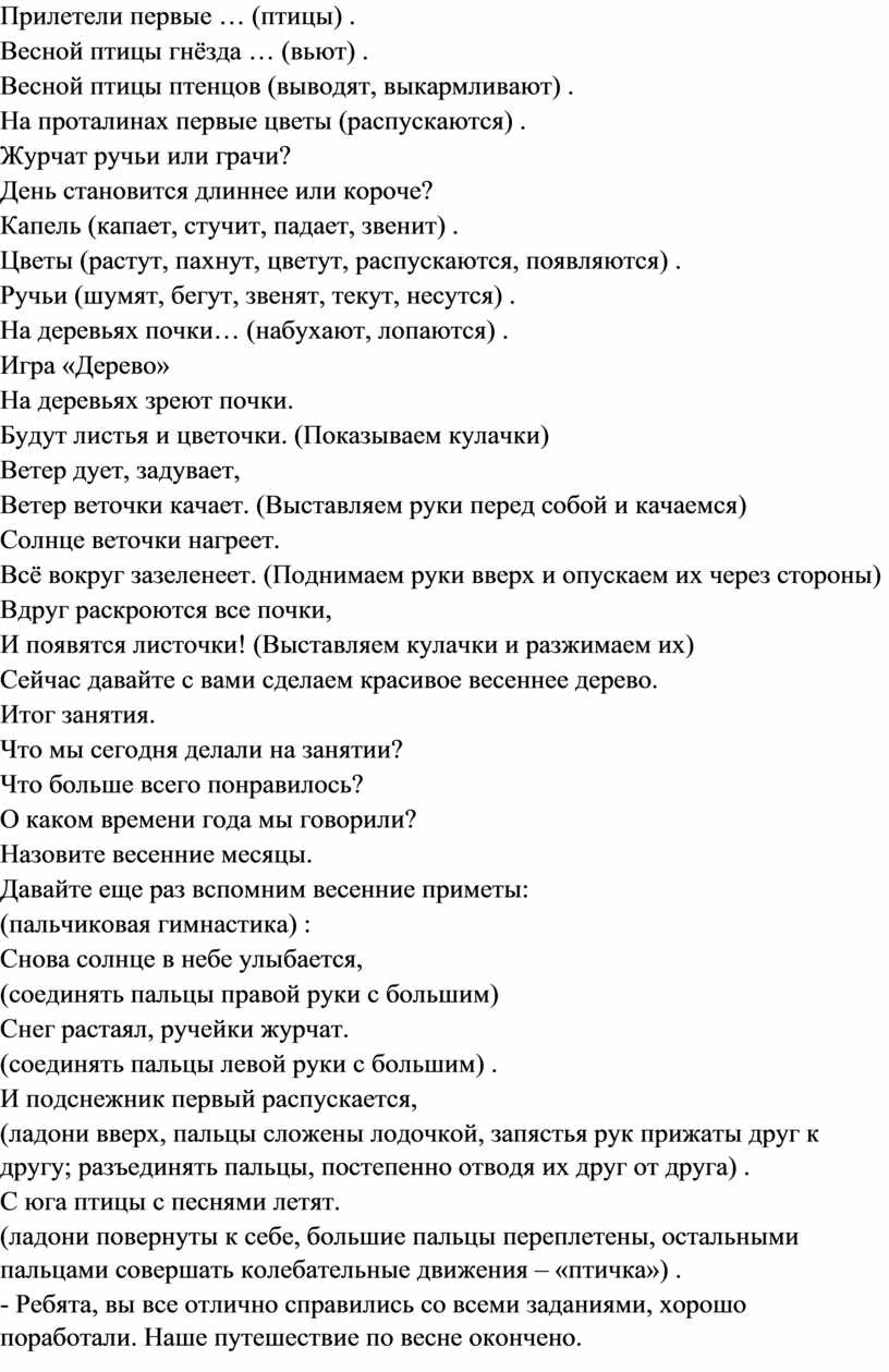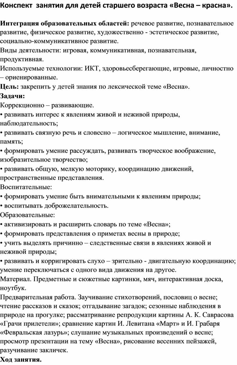 Конспект занятия для детей старшего возраста «Весна – красна».