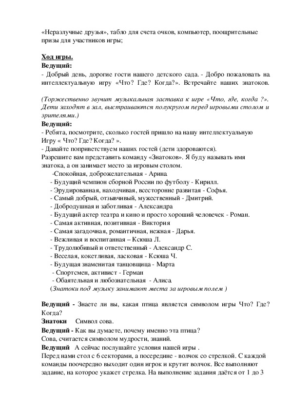 обобщать и активизировать словарь детей словами: интеллектуальная игра,