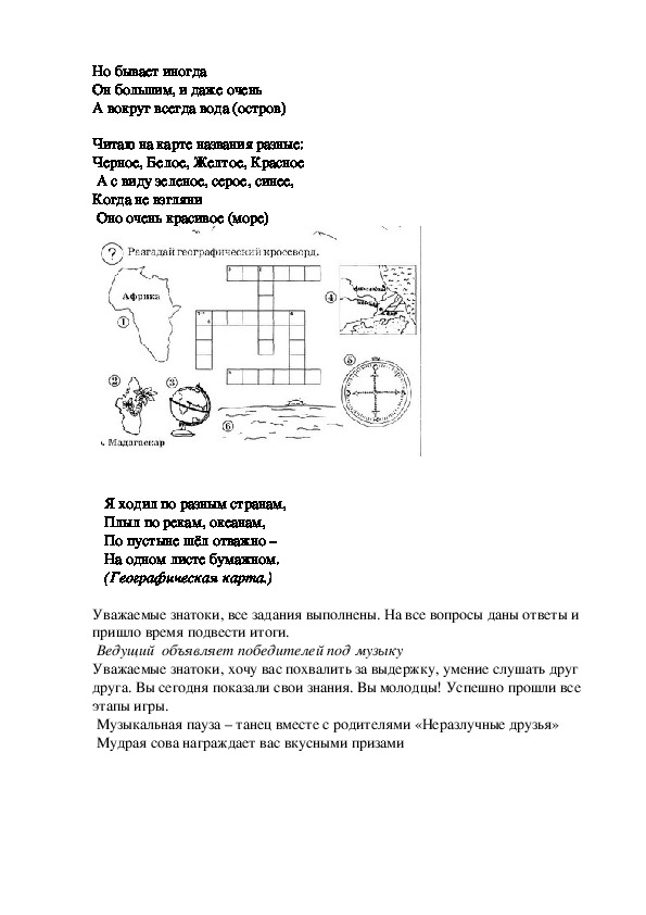 (для музыкальной паузы), рисунки детей, животные разных материков (пазлы),