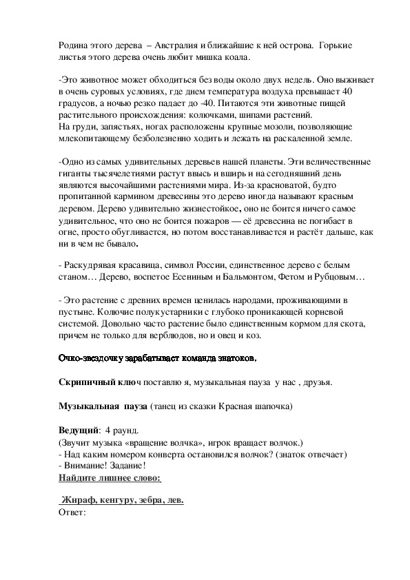 Отгадай по описанию (баобаб, эвкалипт, верблюд, секвойя, верблюжья