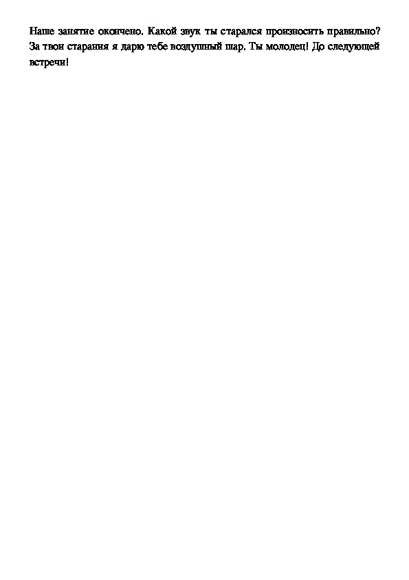 Заключительная часть.Наше занятие окончено. Какой звук ты старался произносить правильно?