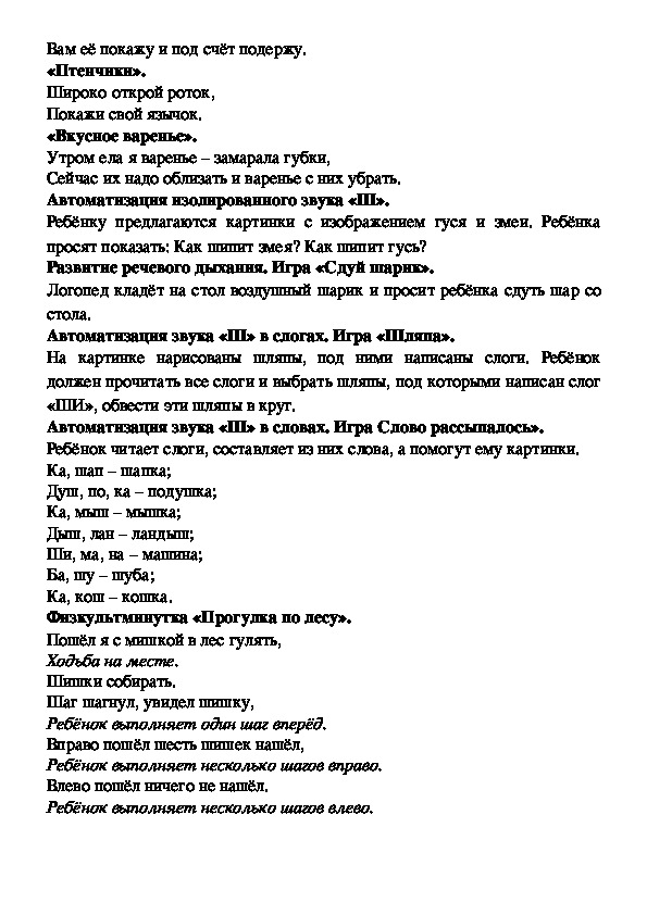 используя как можно больше слов со звуком «Ш».