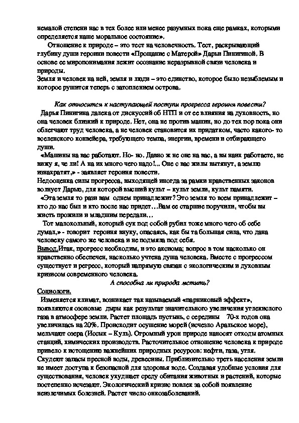 В.Г.Распутин в своем произведении заставляет нас задуматься насколько