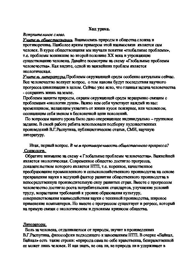 Учитель литературы.Проблемы окружающей среды особенно актуальны сейчас.