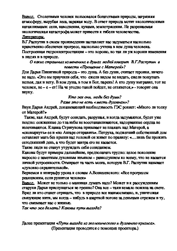 Далее презентация «Пути выхода из экологического и духовного кризиса».