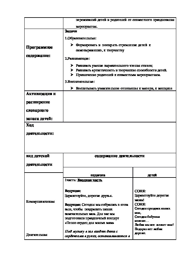 Цель: Способствовать созданию положительных эмоциональных переживаний детей и родителей от совместного празднования мероприятия.