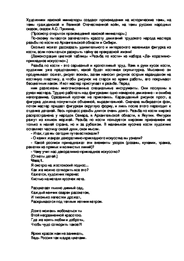 (Демонстрация цветной таблицы «Резьба по кости» из набора «Де коративно