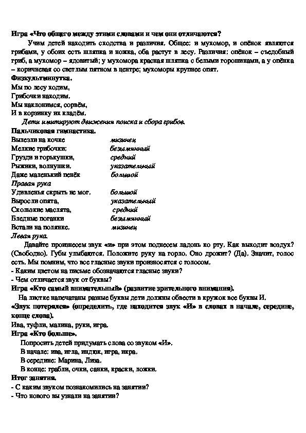 Занятие № 3. Тема: «Грибы. Звук и буква «И».