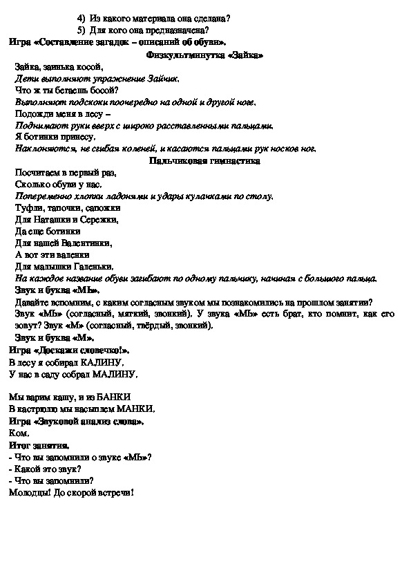 Занятие № 4. Тема: «Обувь. Звук и буква «МЬ».