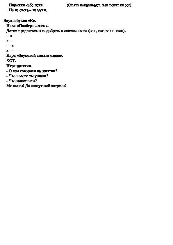 Занятие № 3. Тема: «Зима. Звук и буква «К».