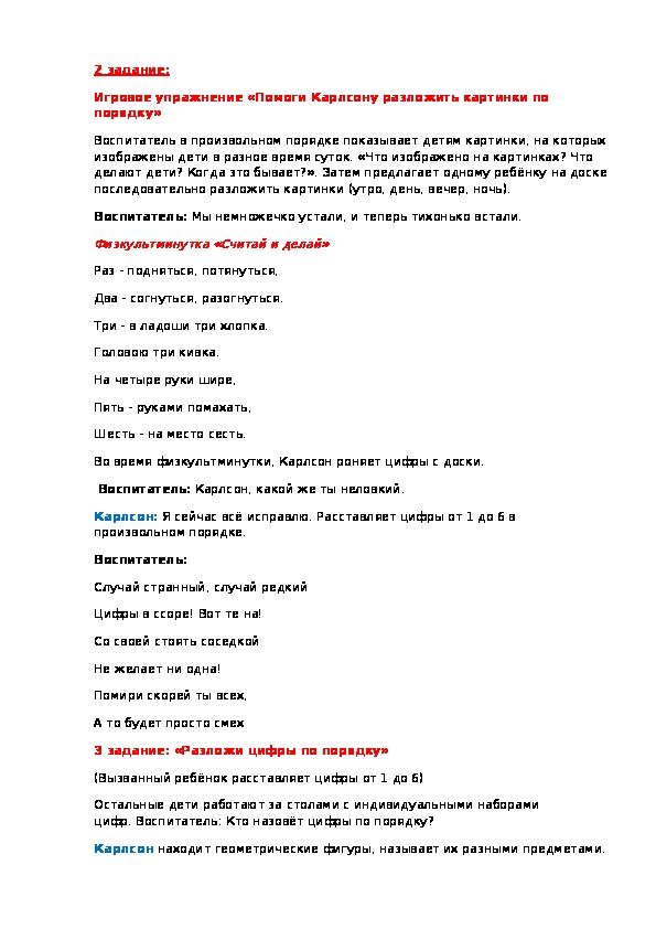 Воспитатель: Карлсон, ты всё напутал. Ребята сейчас разве вечер?