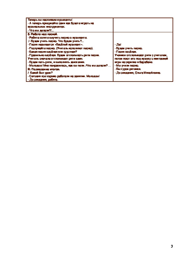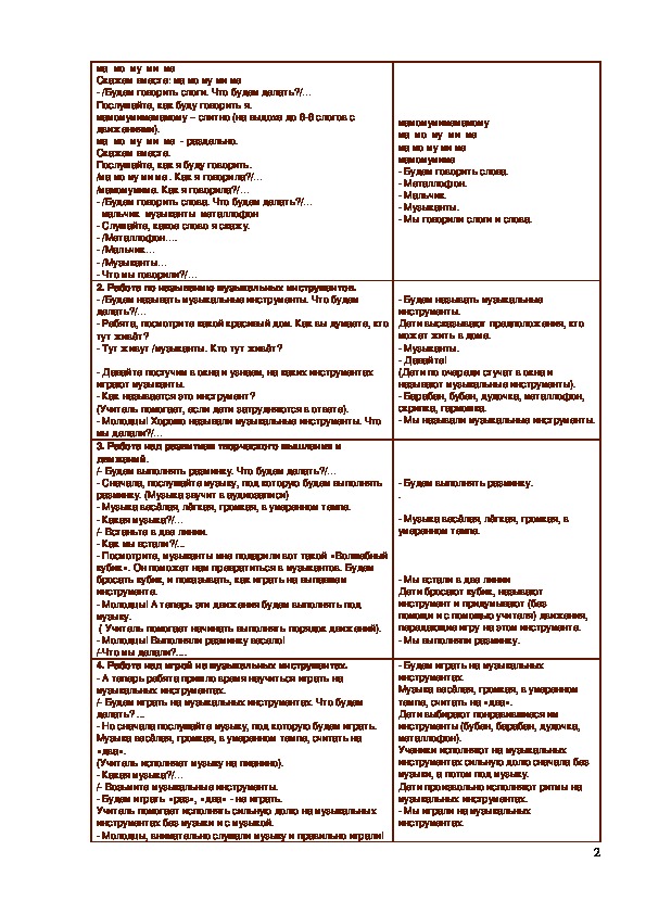 Конспект музыкально-ритмического занятия