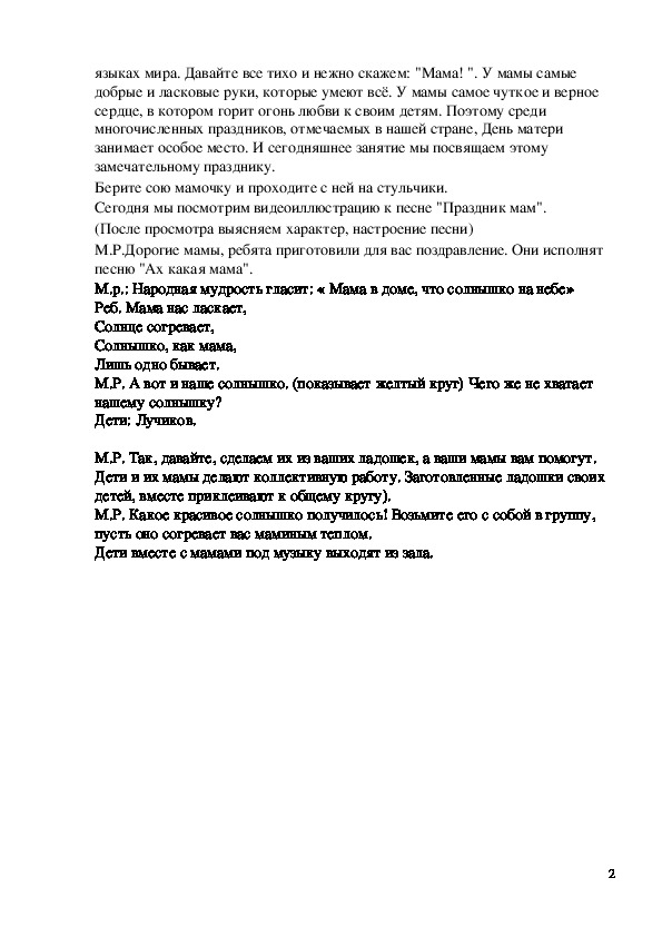 М.р.: Народная мудрость гласит: « Мама в доме, что солнышко на небе»