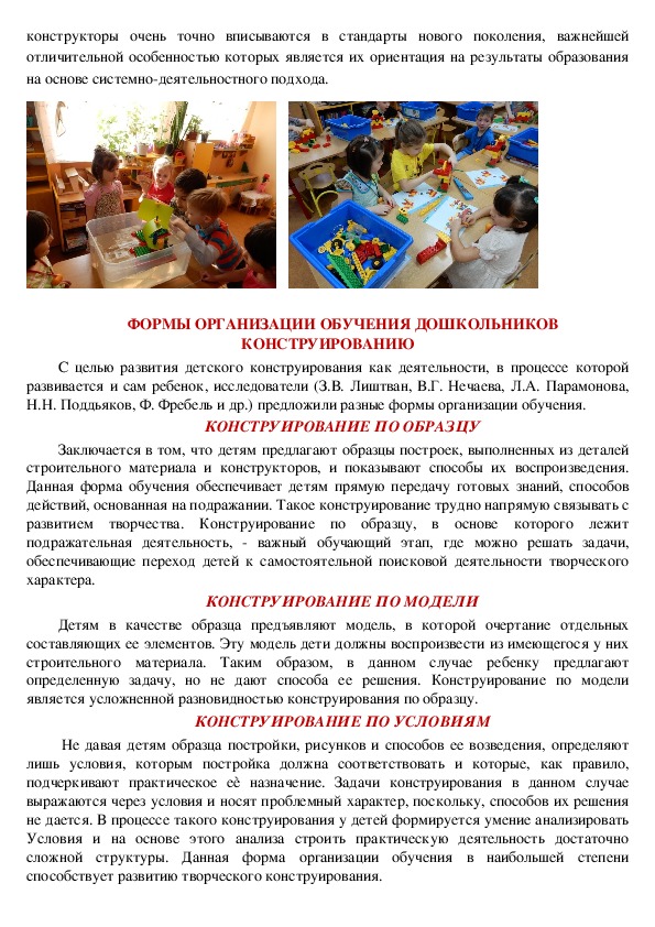 развитием творчества. Конструирование по образцу, в основе которого лежит
