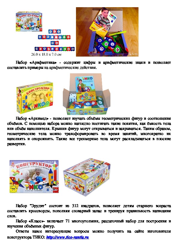 наборов, рассчитанных для детей дошкольного и школьного возраста.